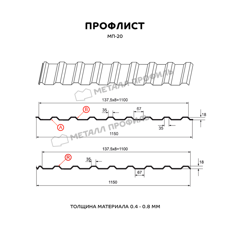 Профилированный лист МП-35 одинаково хорошо подходит как для облицовки стен, заборов, так и для кровли, включая плоскую. Профнастил этой марки обладает полезной шириной 1035 мм. Облегчить монтаж кровли поможет изготовление проката индивидуальной длины, равной длине ската, но максимум 12 метров. Отлично материал зарекомендовал себя и в создании несложных каркасных объектов. Подходит в качестве перегородок в хозяйственных постройках, ангарах. Для изготовления МП-35 используются оцинкованная сталь толщиной от 0,45 до 0,9 мм. Данный профнастил не имеет дополнительных рёбер жёсткости. Однако, правильная геометрия листа и характерные трапециевидные изгибы гарантируют МП-35 оптимальную несущую способность и прочность на изгиб. Наличие широкой палитры оттенков и фактур в ассортименте полимерных покрытий расширяет архитектурные возможности по созданию Профилированного листа.
