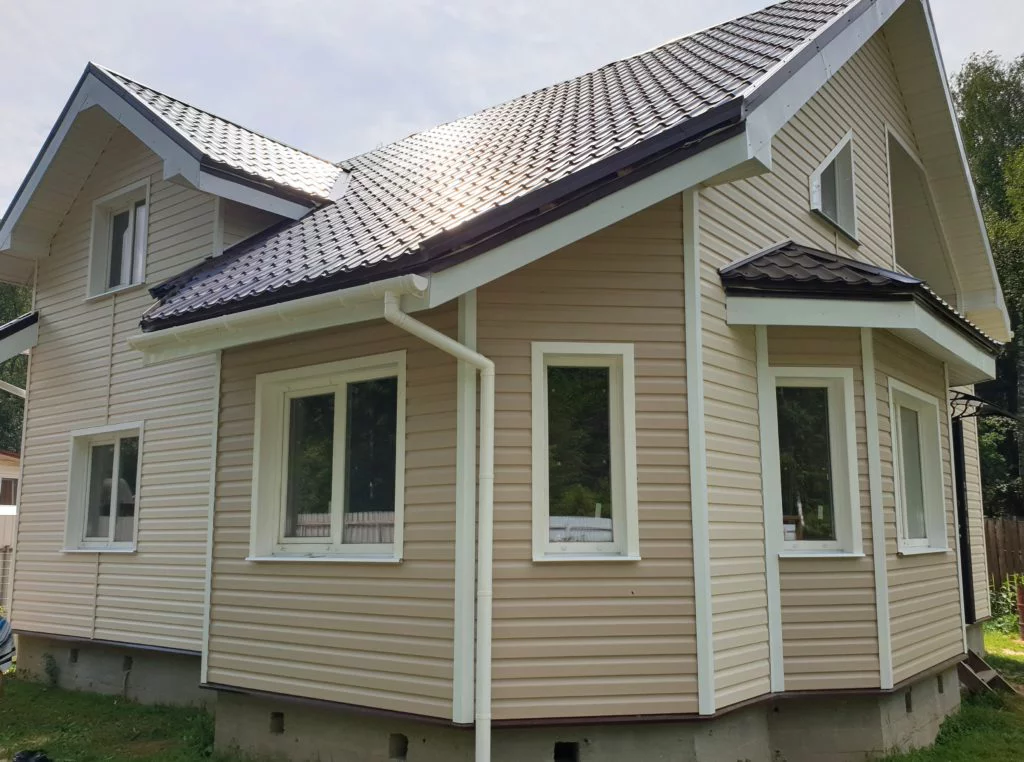 Корабельный брус Слим — виниловый сайдинг Grand Line с особой формой панелей. Их длина и ширина уменьшены, и такая облицовка выглядит аккуратнее, лучше подходит для фасадов со сложной конфигурацией. Геометрия профиля повторяет форму вагонки, поверхность материала текстурирована под дерево и имеет стойкий цвет, который не выгорает на солнце.